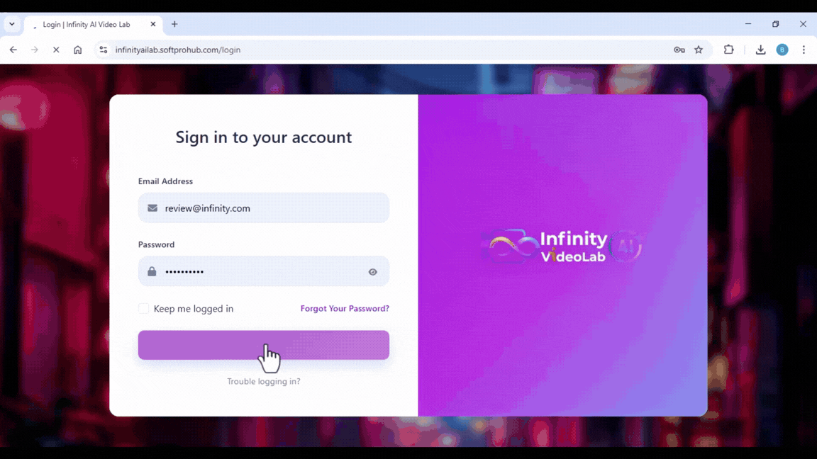 Login to Your Infinity AI Video Lab
