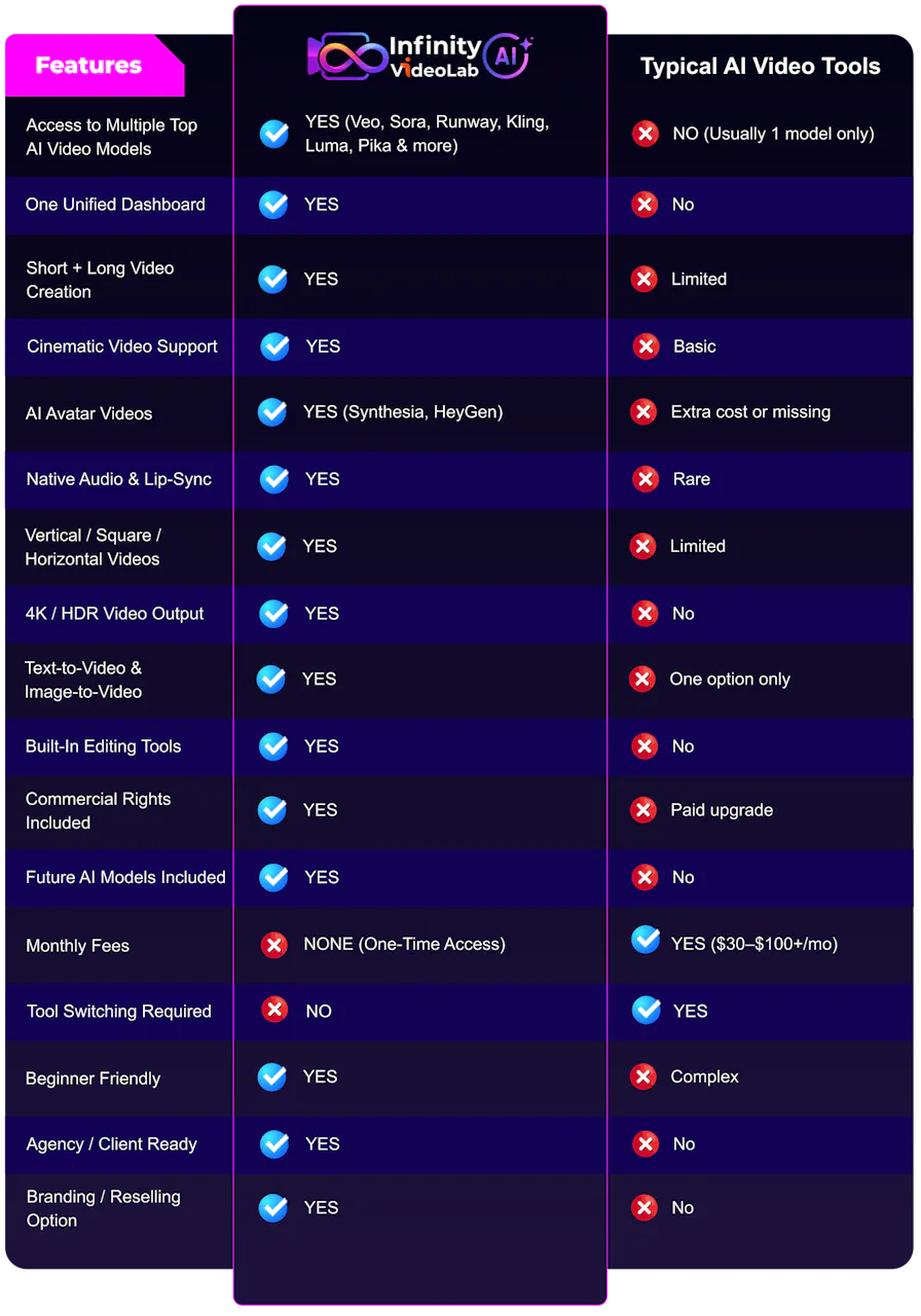 While we’re thrilled to give you lifetime access to Infinity AI Video Lab for just $14.95,